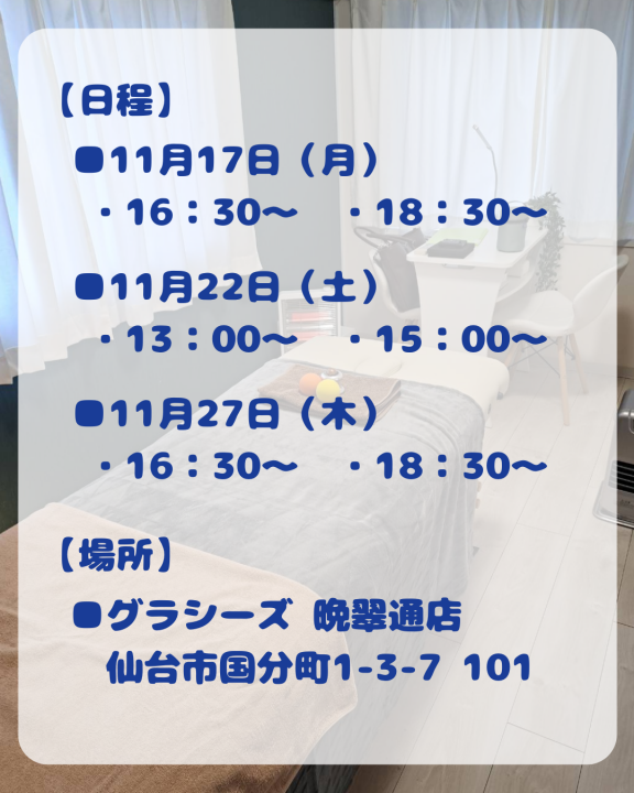 当店のサービスを、より知っていただきたく、下記内容で『無料体験会』を実施させて頂きます。