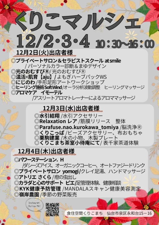 12月 2日(火) くりこマルシェ に出店します